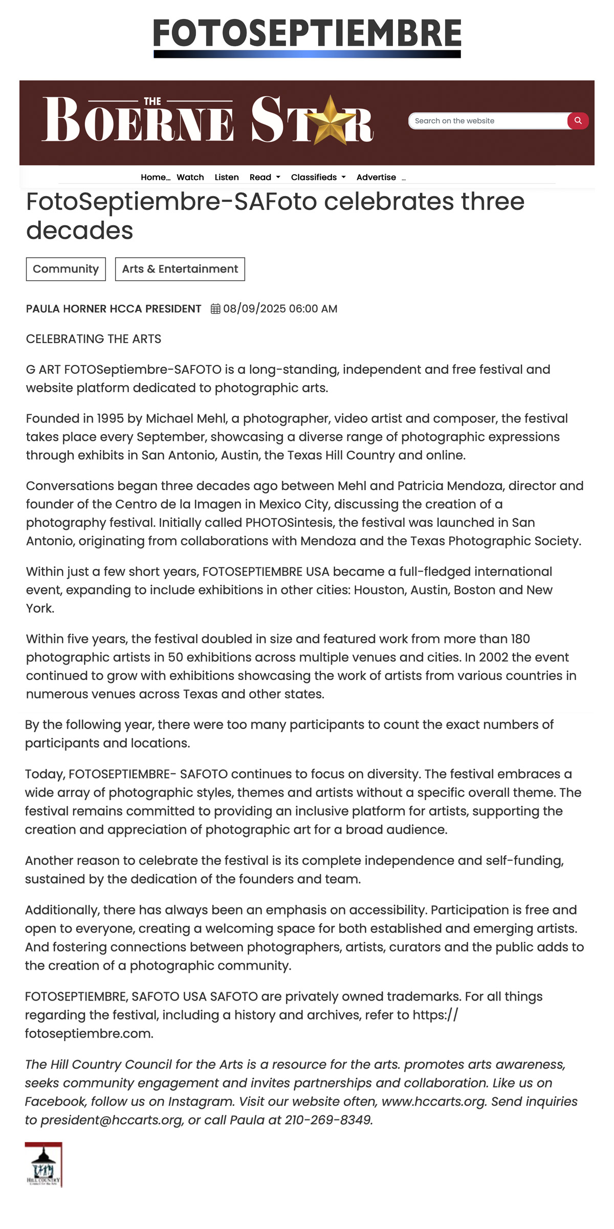 2025 : Michael Mehl : FOTOSEPTIEMBRE Festival Director : FOTOSEPTIEMBRE-SAFOTO Celebrates Three Decades : Paula Horner For The Boerne Star